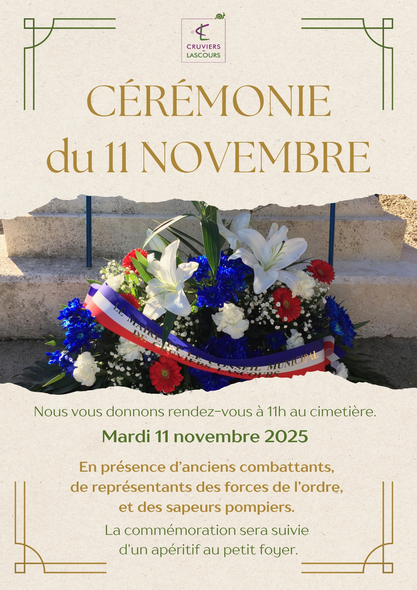 - Mardi 11 novembre 2025 : Commémoration du 11 novembre, rdv au cimetière à 11h