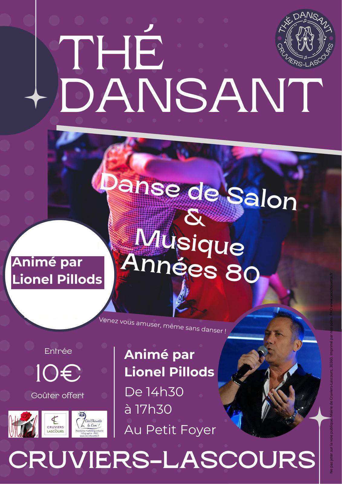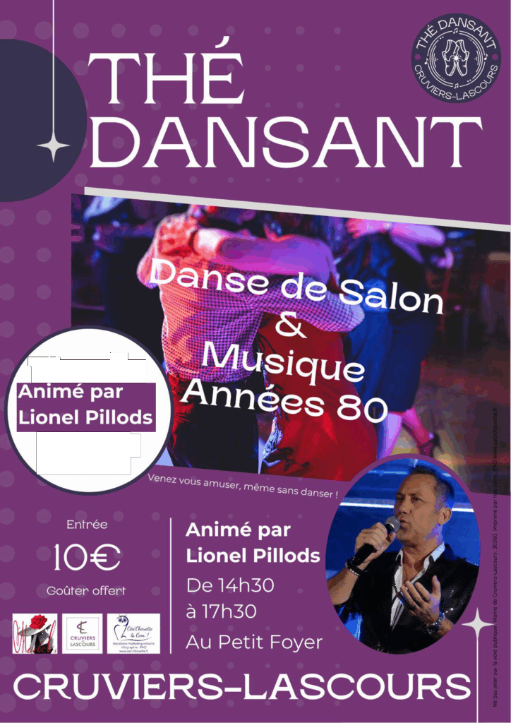- Dimanche 12 avril 2026 : Thé Dansant – Entrée 10 euros : De 14h30 à 17h30