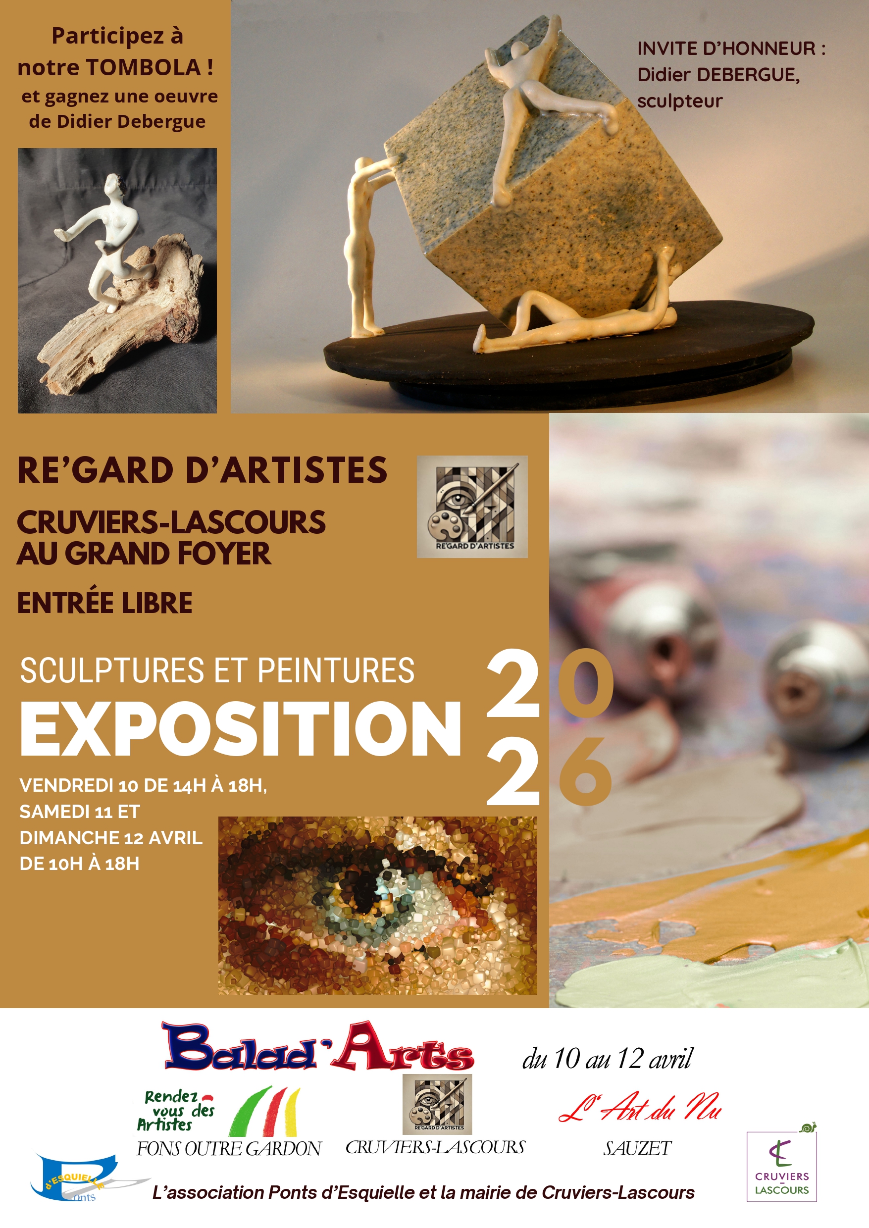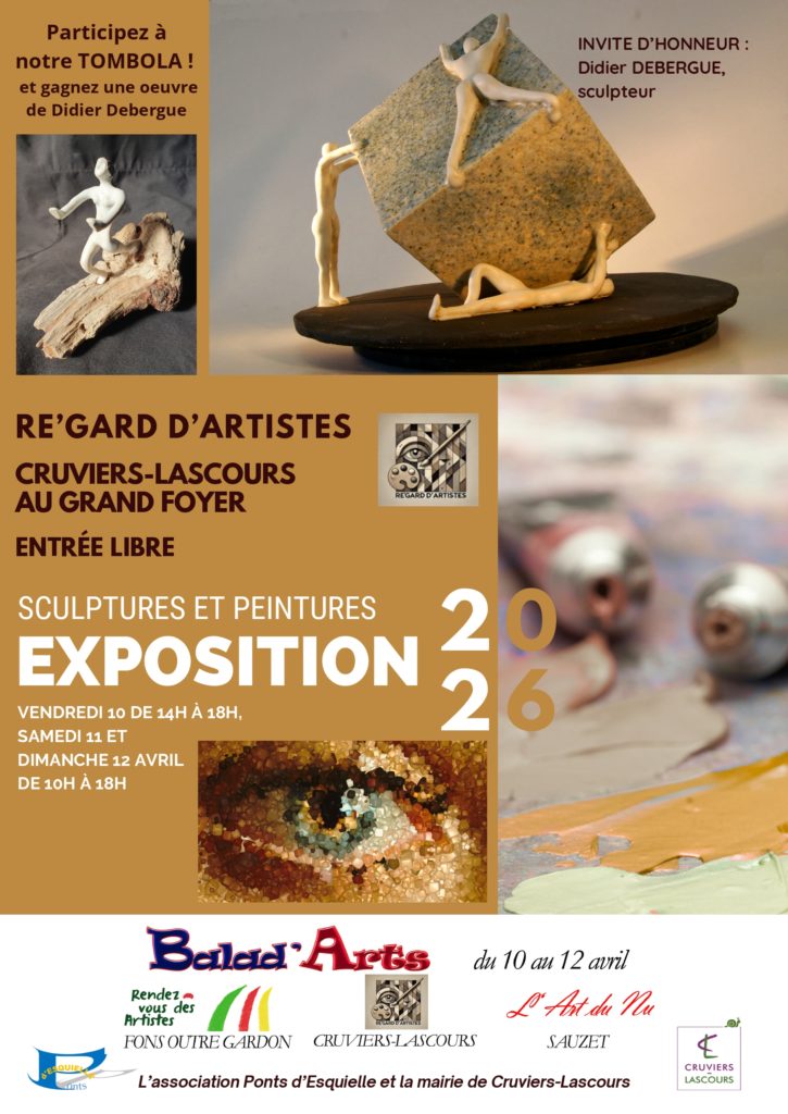 - Vendredi 10 ; Samedi 11 ; Dimanche 12 avril 2026 : Exposition artistique Re’GARD d’Artistes